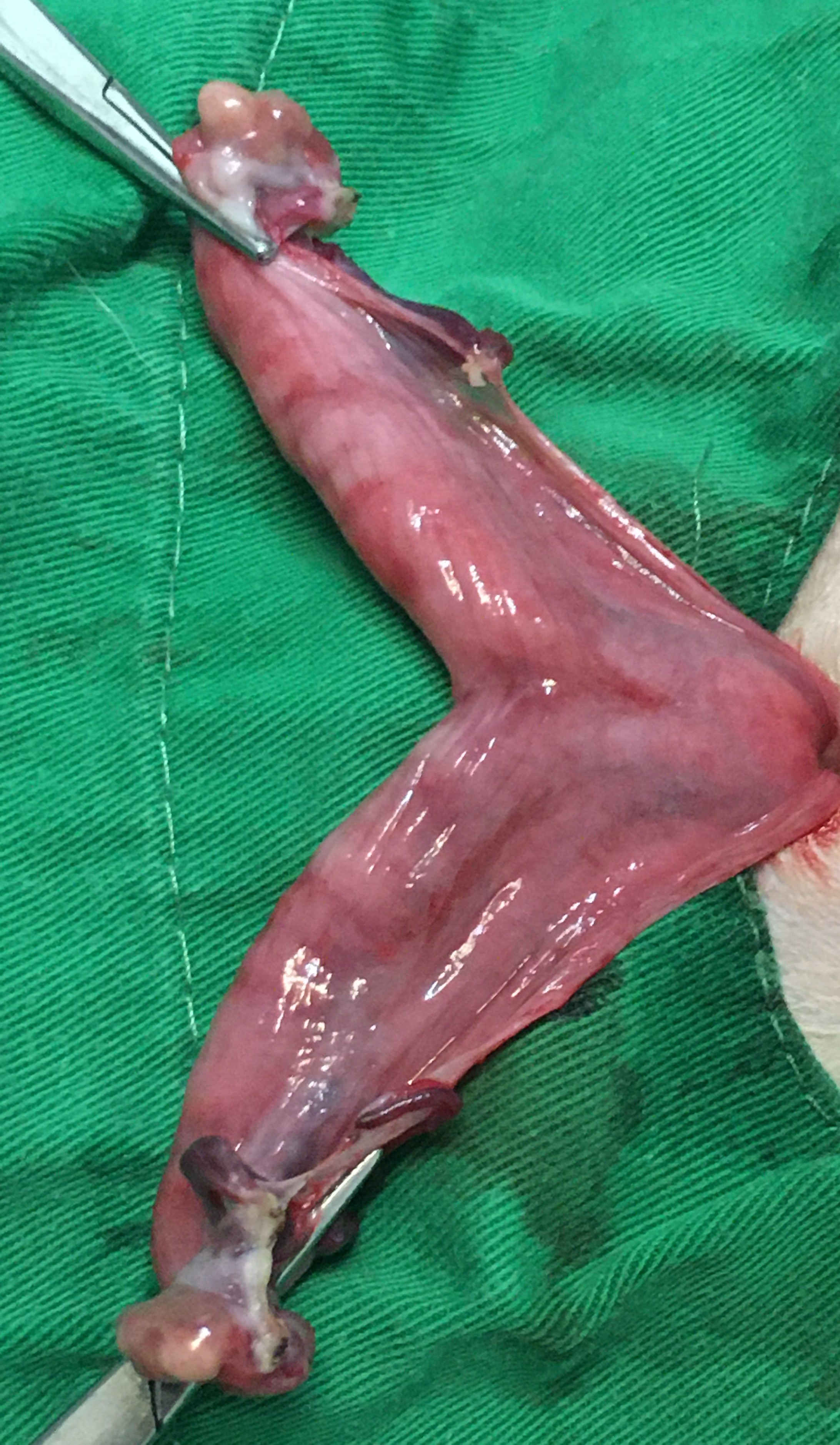 Die Behandlung besteht in einer Ovariohysterektomie (vollständige Kastration).
